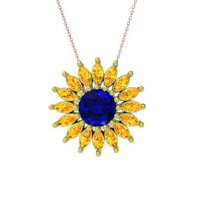 Lab safir ve sitrin 925 ayar altın kaplama gümüş kolye (40 cm gümüş rolo zincir)