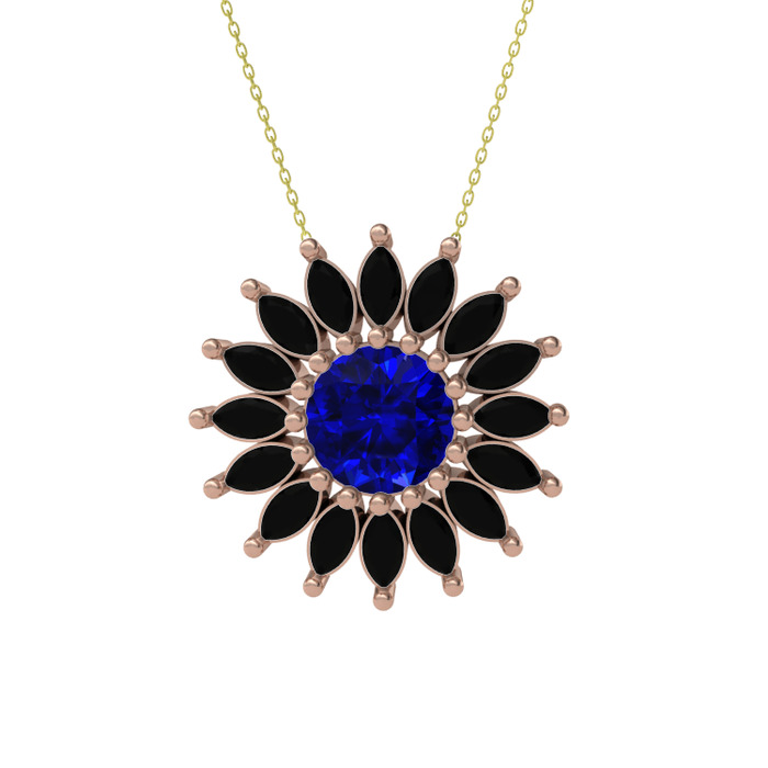 Lab safir ve siyah zirkon 925 ayar rose altın kaplama gümüş kolye (40 cm altın rolo zincir)