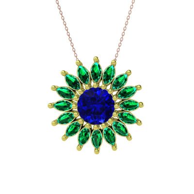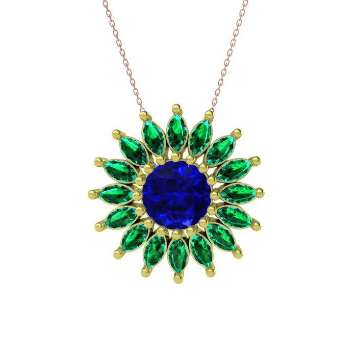 Lab safir ve yeşil kuvars 925 ayar altın kaplama gümüş kolye (40 cm gümüş rolo zincir)