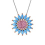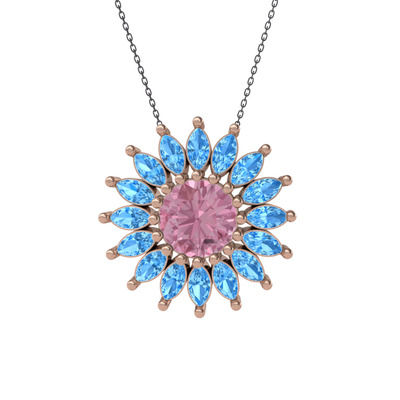 Pembe kuvars ve akuamarin 925 ayar rose altın kaplama gümüş kolye (40 cm gümüş rolo zincir)