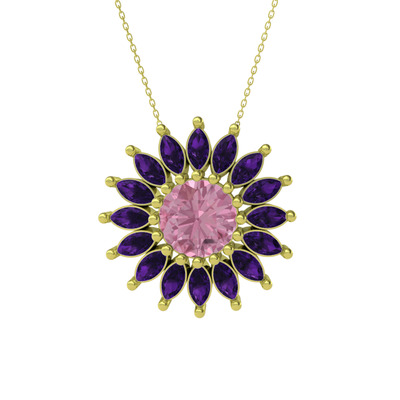 Pembe kuvars ve ametist 8 ayar altın kolye (40 cm altın rolo zincir)