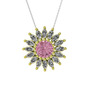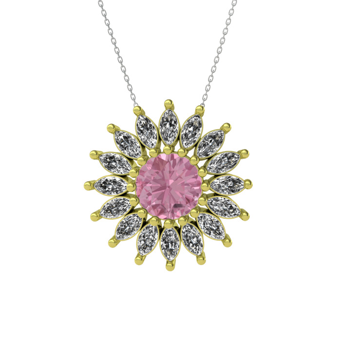 Pembe kuvars ve beyaz zirkon 18 ayar altın kolye (40 cm beyaz altın rolo zincir)