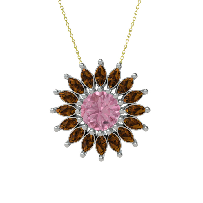 Pembe kuvars ve dumanlı kuvars 18 ayar beyaz altın kolye (40 cm altın rolo zincir)