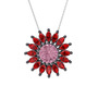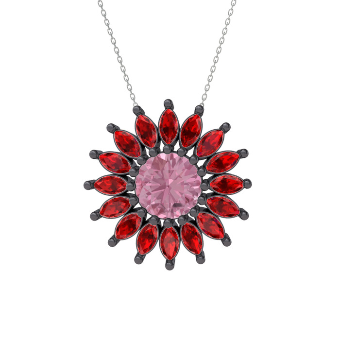 Pembe kuvars ve garnet 925 ayar siyah rodyum kaplama gümüş kolye (40 cm beyaz altın rolo zincir)