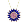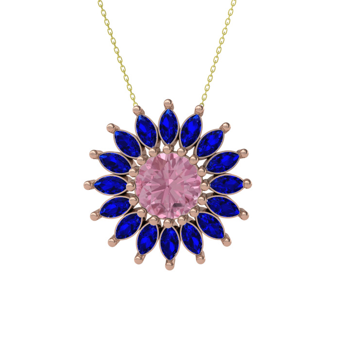 Pembe kuvars ve lab safir 925 ayar rose altın kaplama gümüş kolye (40 cm altın rolo zincir)