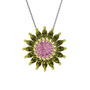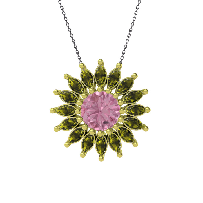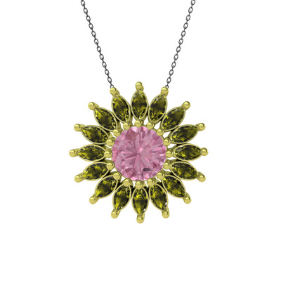 Pembe kuvars ve peridot 14 ayar altın kolye (40 cm gümüş rolo zincir)