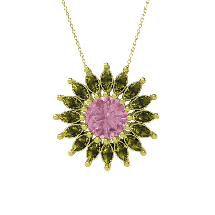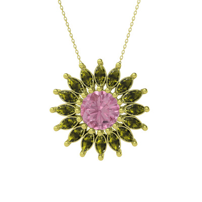 Pembe kuvars ve peridot 8 ayar altın kolye (40 cm altın rolo zincir)