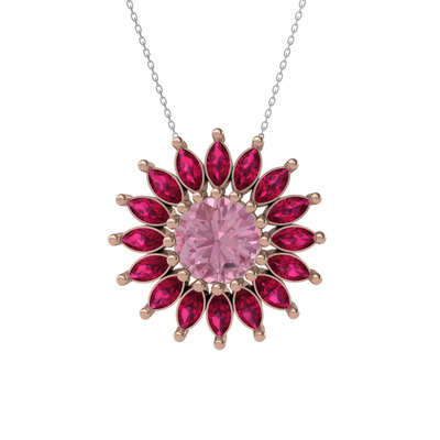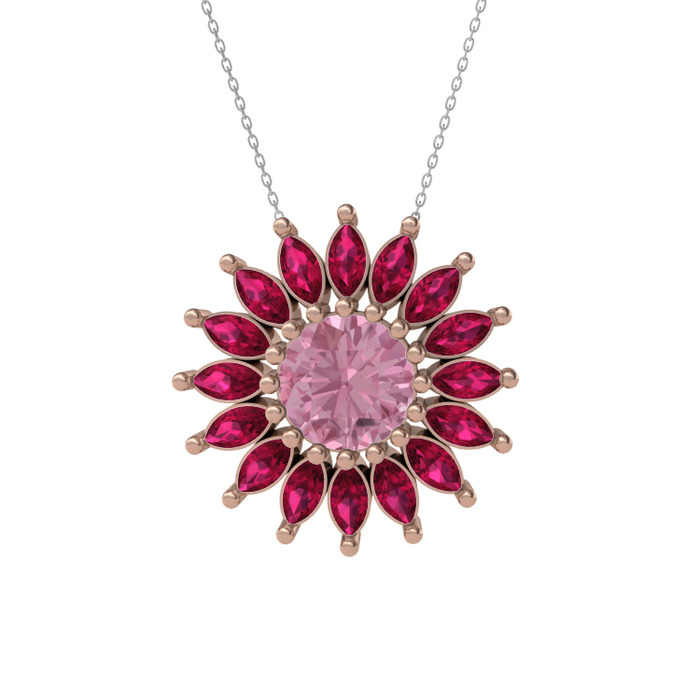 Pembe kuvars ve rodolit garnet 18 ayar rose altın kolye (40 cm beyaz altın rolo zincir)