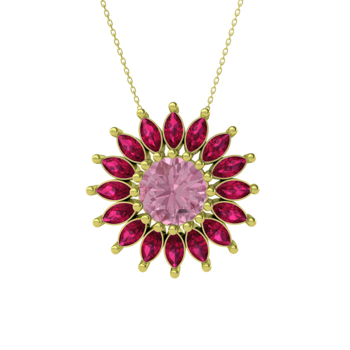 Pembe kuvars ve rodolit garnet 8 ayar altın kolye (40 cm altın rolo zincir)