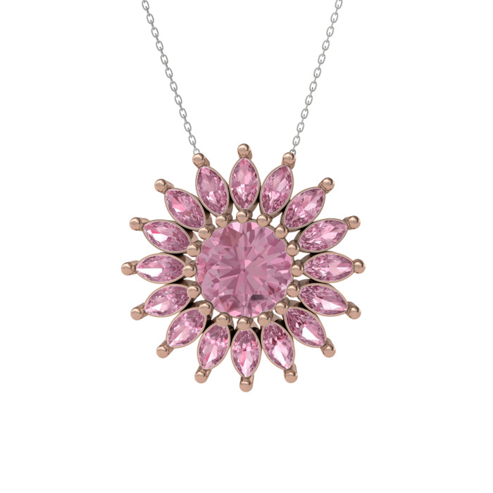 Pembe kuvars 925 ayar rose altın kaplama gümüş kolye (40 cm gümüş rolo zincir)