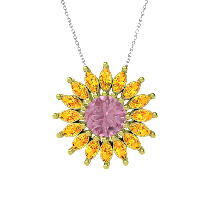 Pembe kuvars ve sitrin 18 ayar altın kolye (40 cm gümüş rolo zincir)