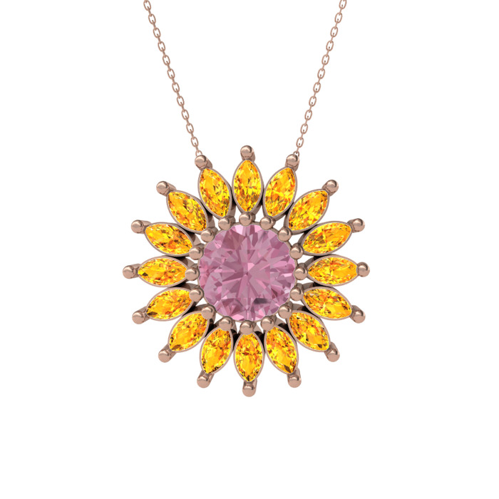 Pembe kuvars ve sitrin 925 ayar rose altın kaplama gümüş kolye (40 cm rose altın rolo zincir)