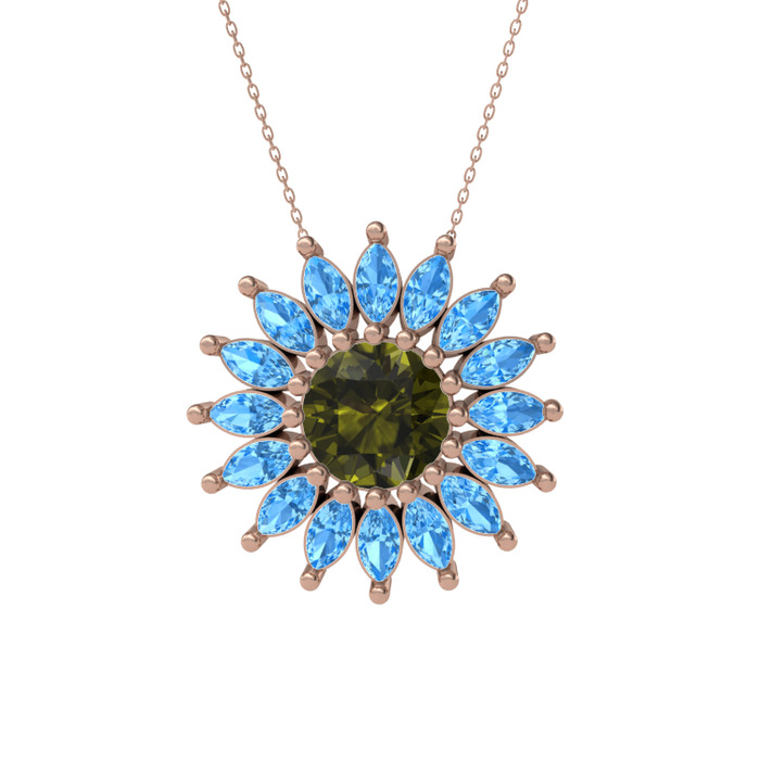 Peridot ve akuamarin 925 ayar rose altın kaplama gümüş kolye (40 cm rose altın rolo zincir)