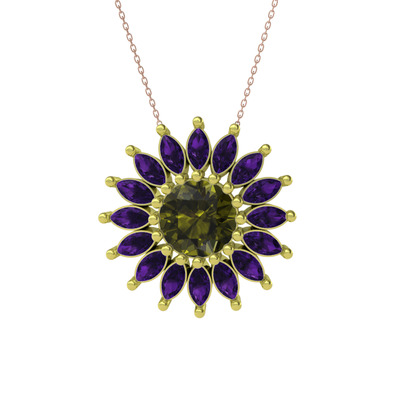 Peridot ve ametist 14 ayar altın kolye (40 cm rose altın rolo zincir)