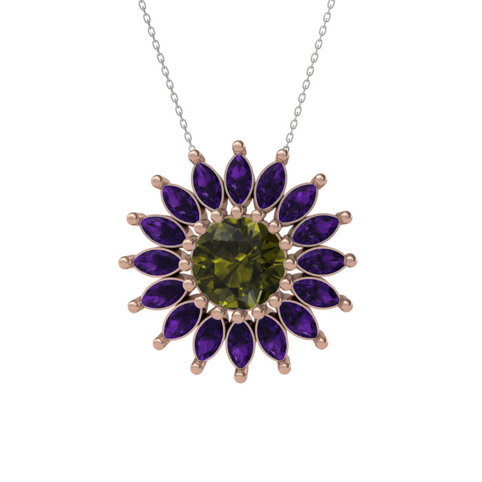 Peridot ve ametist 18 ayar rose altın kolye (40 cm beyaz altın rolo zincir)
