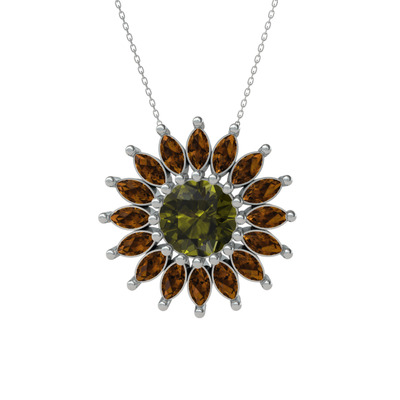 Peridot ve dumanlı kuvars 925 ayar gümüş kolye (40 cm gümüş rolo zincir)