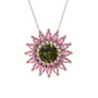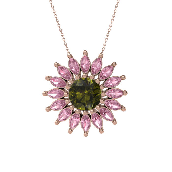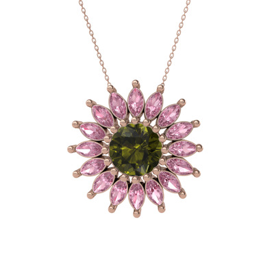 Peridot ve pembe kuvars 925 ayar rose altın kaplama gümüş kolye (40 cm rose altın rolo zincir)