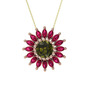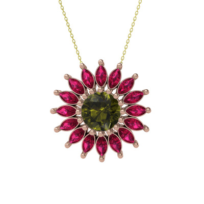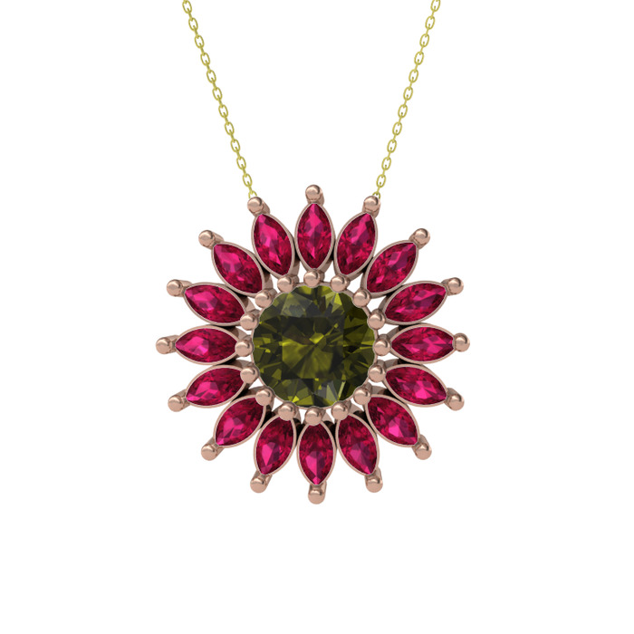 Peridot ve rodolit garnet 18 ayar rose altın kolye (40 cm gümüş rolo zincir)
