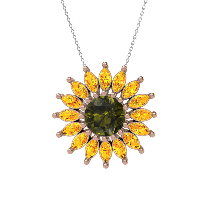 Peridot ve sitrin 14 ayar rose altın kolye (40 cm gümüş rolo zincir)