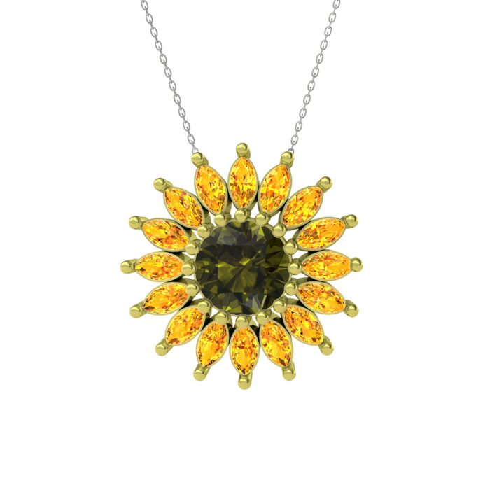 Peridot ve sitrin 8 ayar altın kolye (40 cm beyaz altın rolo zincir)
