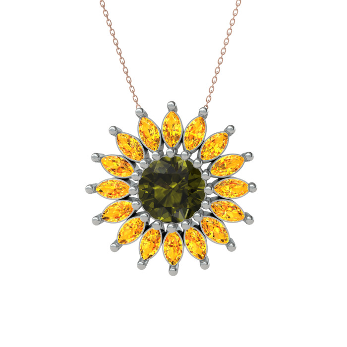 Peridot ve sitrin 8 ayar beyaz altın kolye (40 cm gümüş rolo zincir)