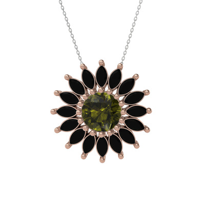 Peridot ve siyah zirkon 18 ayar rose altın kolye (40 cm beyaz altın rolo zincir)