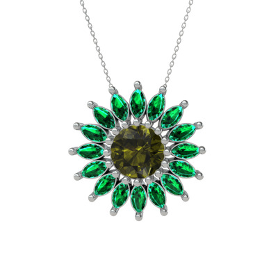 Peridot ve yeşil kuvars 18 ayar beyaz altın kolye (40 cm beyaz altın rolo zincir)