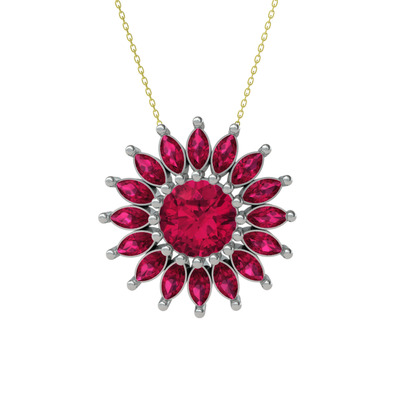 Rodolit garnet 18 ayar beyaz altın kolye (40 cm altın rolo zincir)