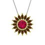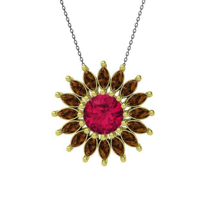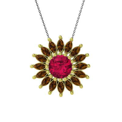 Rodolit garnet ve dumanlı kuvars 8 ayar altın kolye (40 cm gümüş rolo zincir)