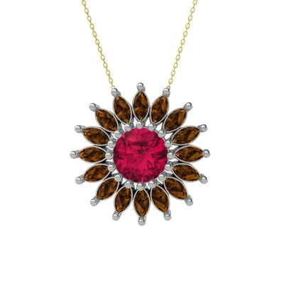 Rodolit garnet ve dumanlı kuvars 925 ayar gümüş kolye (40 cm gümüş rolo zincir)