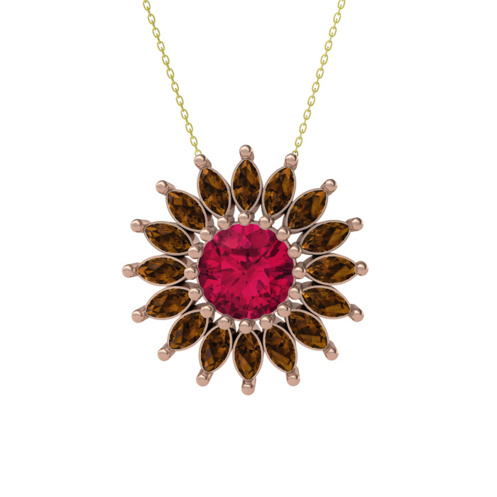 Rodolit garnet ve dumanlı kuvars 925 ayar rose altın kaplama gümüş kolye (40 cm altın rolo zincir)