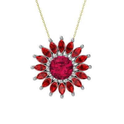 Rodolit garnet ve garnet 18 ayar beyaz altın kolye (40 cm altın rolo zincir)