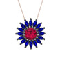 Rodolit garnet ve lab safir 925 ayar siyah rodyum kaplama gümüş kolye (40 cm rose altın rolo zincir)