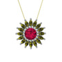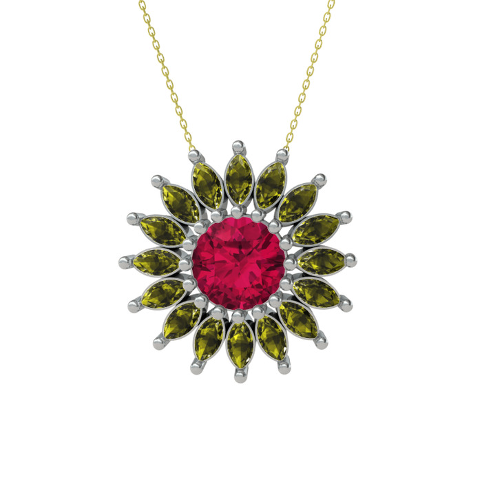 Rodolit garnet ve peridot 14 ayar beyaz altın kolye (40 cm altın rolo zincir)