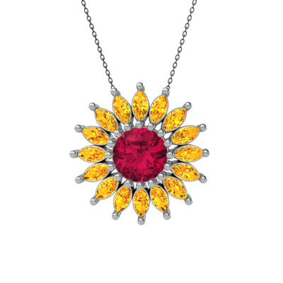 Rodolit garnet ve sitrin 18 ayar beyaz altın kolye (40 cm gümüş rolo zincir)