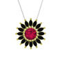 Rodolit garnet ve siyah zirkon 14 ayar altın kolye (40 cm beyaz altın rolo zincir)