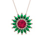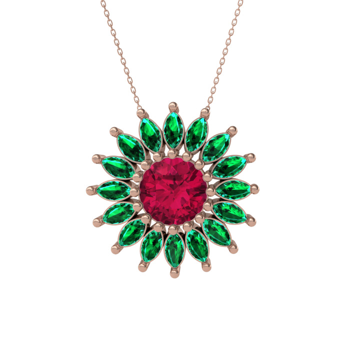 Rodolit garnet ve yeşil kuvars 18 ayar rose altın kolye (40 cm rose altın rolo zincir)