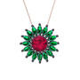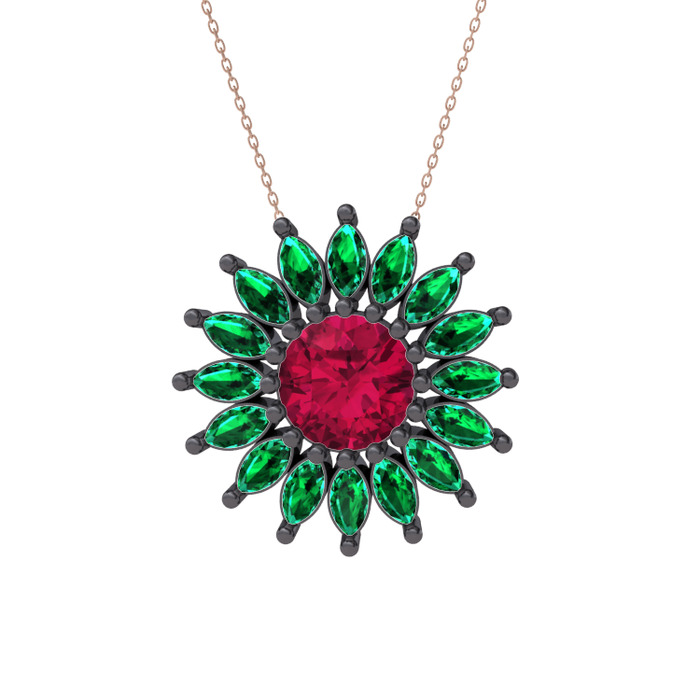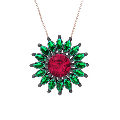 Rodolit garnet ve yeşil kuvars 925 ayar siyah rodyum kaplama gümüş kolye (40 cm rose altın rolo zincir)