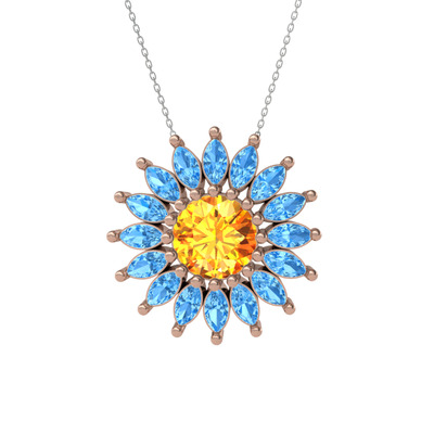 Sitrin ve akuamarin 14 ayar rose altın kolye (40 cm beyaz altın rolo zincir)
