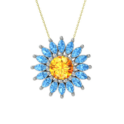 Sitrin ve akuamarin 8 ayar beyaz altın kolye (40 cm altın rolo zincir)