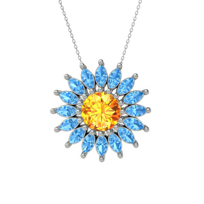 Sitrin ve akuamarin 8 ayar beyaz altın kolye (40 cm beyaz altın rolo zincir)