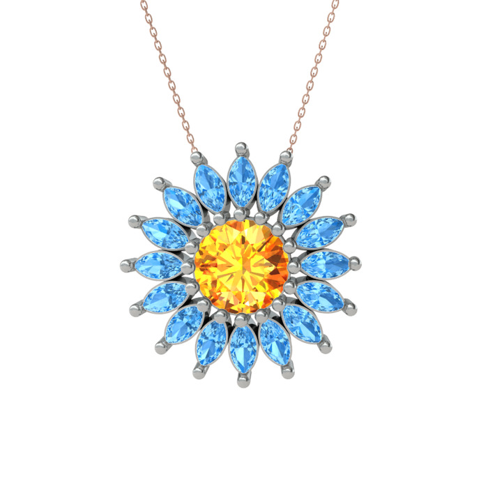Sitrin ve akuamarin 925 ayar gümüş kolye (40 cm gümüş rolo zincir)