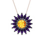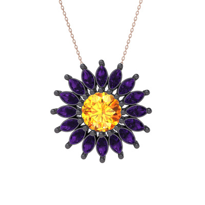 Sitrin ve ametist 925 ayar siyah rodyum kaplama gümüş kolye (40 cm rose altın rolo zincir)