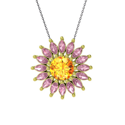 Sitrin ve pembe kuvars 18 ayar altın kolye (40 cm gümüş rolo zincir)