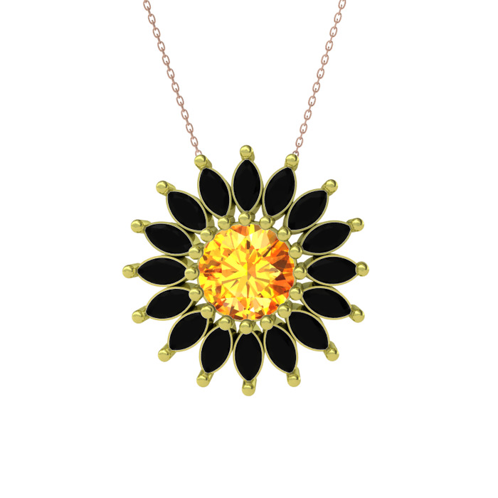 Sitrin ve siyah zirkon 925 ayar altın kaplama gümüş kolye (40 cm rose altın rolo zincir)