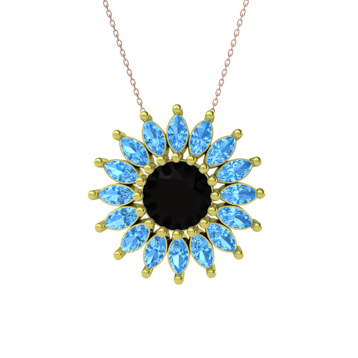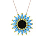 Siyah zirkon ve akuamarin 18 ayar altın kolye (40 cm rose altın rolo zincir)