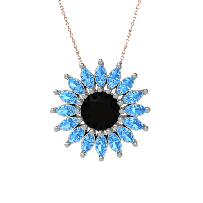 Siyah zirkon ve akuamarin 925 ayar gümüş kolye (40 cm gümüş rolo zincir)