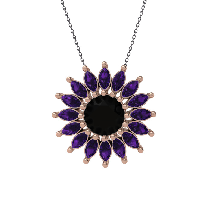Siyah zirkon ve ametist 18 ayar rose altın kolye (40 cm gümüş rolo zincir)