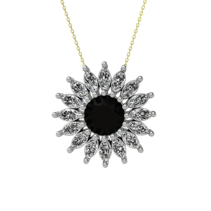 Siyah zirkon ve beyaz zirkon 18 ayar beyaz altın kolye (40 cm altın rolo zincir)