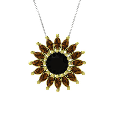 Siyah zirkon ve dumanlı kuvars 8 ayar altın kolye (40 cm beyaz altın rolo zincir)